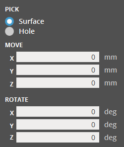 Move and Rotate are used to transform the Tool part in relation to the target part.