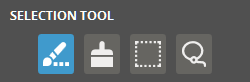 Lasso - Draw a closed loop on the part. The loop closes automatically when the mouse button is released, and faces inside the loop are selected.