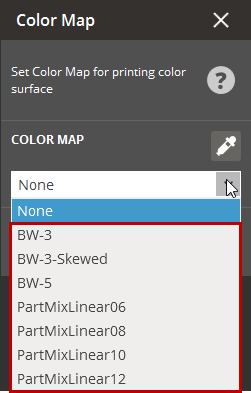 These maps allow for the mapping of a wide range of colors to existing or specialized material mixes, depending on their intensity. For example, you can define your own material mixes to convert input part color (typically texture) into material mixes for basic two-color support on printers like the ProJet 5500X-E/5600 for part/support mixtures.