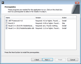 If prerequisite packages are not installed previously, an installation window will appear to install the prerequisite packages.