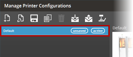 When using the Manage Printer Configurations for the first time, a default printer configuration that includes the current settings defined in the Printer is only listed as "Unsaved" in the Printer Configurations List.