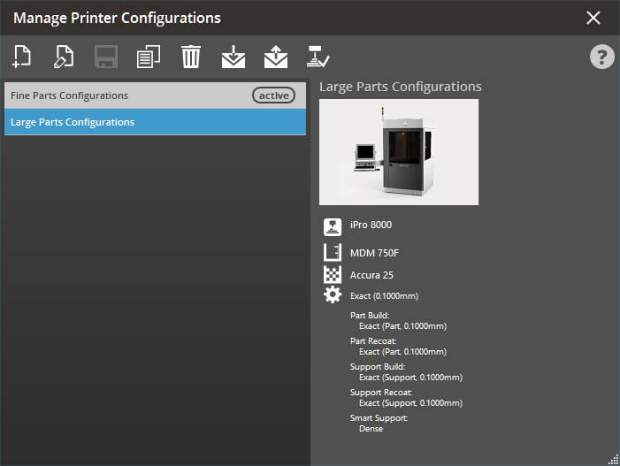 Note: (Applicable to NextDent 5100 or Figure 4 Jewelry printer users) The Manage Printer Configurations is exclusively available for Figure 4 printers.