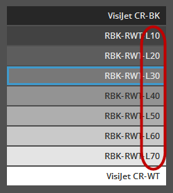 Lightness (L) describes the color gradient value between the two material colors of the material mixture.