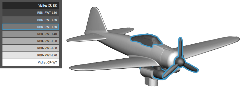 Some MJP-printers are able to print with multiple materials in the same print. When connecting to the printer using the Printer command, in the Print Mode step, single- or multi-material modes can be selected.