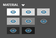 In the View command, you can set the visibility of parts with a certain material assigned to it. Hover the mouse pointer over a material to see which parts or subparts has that material assigned to them. Click on a material to toggle visibility on or off.