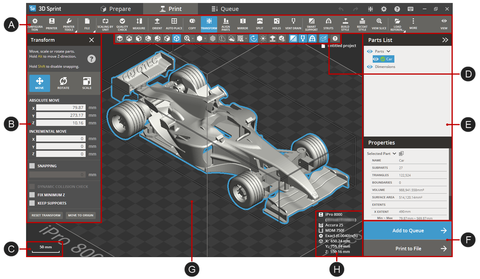 Use Print to setup and prepare your print. See Viewport and Print Platform for more information on the viewport and platform. To add 3D-files to the Print Platform, under File, click Import and navigate to your 3D-file.