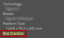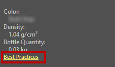 Best practice links for both printers and materials are shown when hovering over the printer or material. When connected to the internet, clicking on the Best Practices link will open the guides in a web browser.