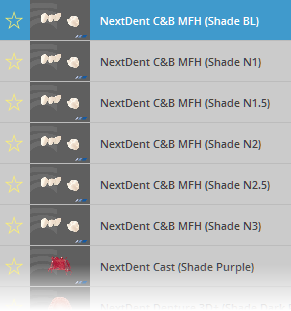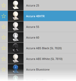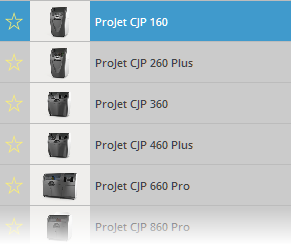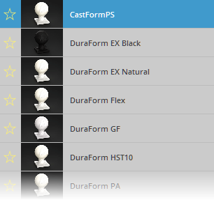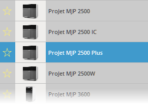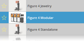 Note: To set your favorite printers and materials for later use, toggle on the yellow star button