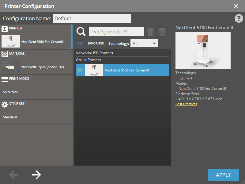 Note: The Manage Printer Configurations is exclusively available for Ceramill printers.
