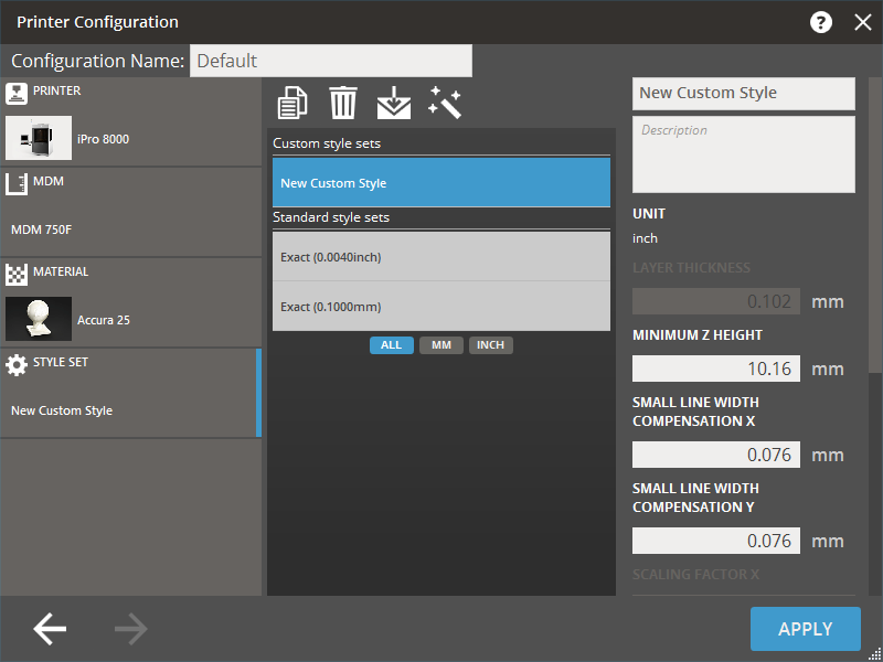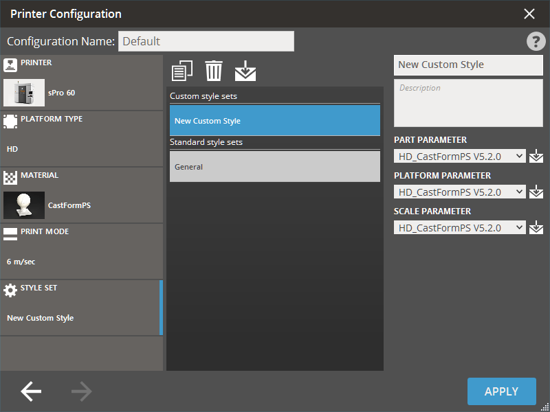 Note: More information on default SLA build styles can be found here: SLA Build Styles