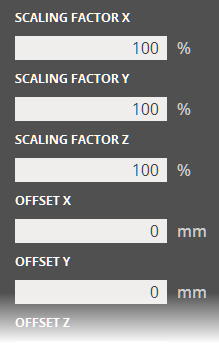 Note: The Offset X, Offset Y, and Offset Z options are available only for ProJet MJP 2500 and 2500 Plus.