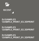 Open recently used .3dprint print project file. The .3dprint native file contains the entire project, print setup and file preparations including part data.