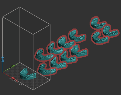 Note: If there are too many parts and not all arches could be stacked, the warning appears and the extra models are placed outside of the build volume and marked in red in the parts list.