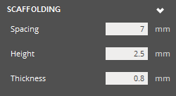 Height (Min. 1.5mm - Max. 2.5mm; Default is 2.5mm) - The height of scaffolding beams, that are measured from the base.