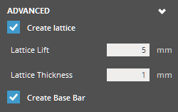 Lattice Thickness (Min. 0.75mm - Max. 1.5mm; Default is 1mm) - Specify the thickness of the lattice supports.