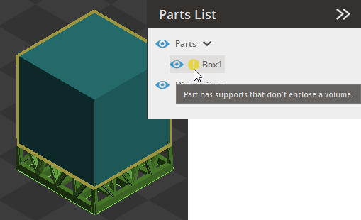 Add thickness to existing Empire supports, giving them volume to enable build generation. Traditional SLA Empire supports usually do not enclose a volume. However, for the PSLA 270, which is projector-based, supports must enclose a volume to be printable. This tool allows users to generate a build even when using supports that do not have a closed volume by adding the necessary thickness.