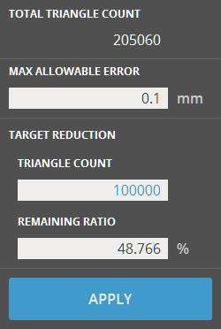 Note: The Maximum Allowable Error takes priority. If the maximum error is not achievable, the final number of triangles or percentage will be higher than the target value.