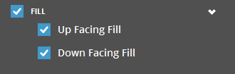 Up Facing Fill - Shows or hides upward facing fill of the part. Down Facing Fill- Shows or hides downward facing fill of the part. |